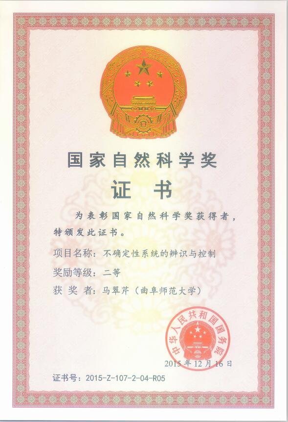 2014年9月徐润获山东省高等学校优秀科研成果奖自然科学类一等奖