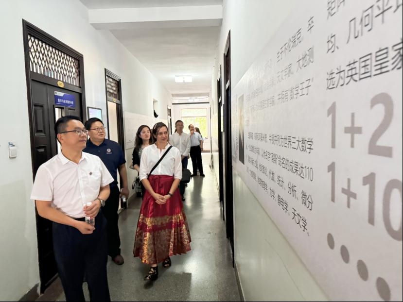 王培合对坎特伯雷大学代表团的到来表示热烈欢迎,介绍了学院的基本情况、人才培养、质量保障与对外合作。他表示,学院致力于与国外高校开展高质量的学术交流、产学研合作,培养更多具有国际视野和竞争力的高素质人才。Clemency Montelle教授对学院的学科建设、人才培养表示赞赏。她介绍了新西兰地理区位优势、学校办学成就、优势学科专业以及国际合作愿景。双方就学分互认、教师访学、学生长短期项目以及毕业生海外深造等进行了充分探讨,达成了一致意向,并表示将尽快推动上述合作意向落实落地。随后,Clemency Montelle教授一行参观了学院数学文化长廊。