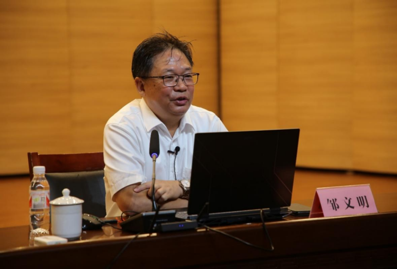 邹文明教授以马克思主义经典作家马克思、恩格斯及历史名人拿破仑等与数学的深厚渊源为引,深入浅出地讲述了数学学科的辉煌历史及其在推动社会进步和人类发展中的关键作用。他结合自身丰富的学术经历,与现场师生分享了“如何学好数学”的心得体会,强调在数学探索的道路上,唯有坚韧不拔、勇攀高峰,方能领略科学的无限风光。他通过华罗庚等数学家的感人事迹,生动展现了新时代科学家精神的核心内涵:胸怀祖国、服务人民的爱国精神;永攀高峰、敢为人先的创新精神;追求真理、严谨治学的求实精神;淡泊名利、潜心研究的奉献精神;集智攻关、团结协作的协同精神;甘为人梯、奖掖后学的育人精神。他鼓励2024级新生要立大志、做有德之人、要有坚韧不拔的意志,为实现民族复兴贡献力量。
