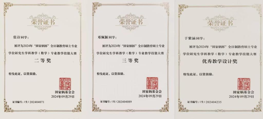 数学科学学院3名研究生进入决赛,张诗荣获二等奖、邓佩颖荣获三等奖、于紫涵荣获优秀教学设计奖,指导教师冯振举荣获“优秀指导教师”奖。