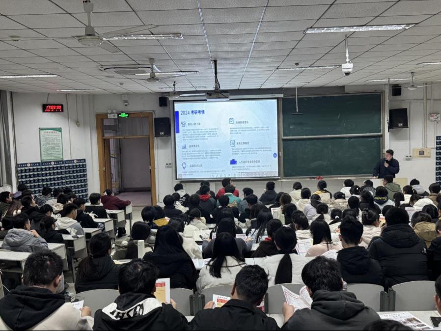 分别在综合楼101教室和数学楼101教室召开两场2022级高质量就业专题报告会,会议由辅导员杜晨曦、吕瑞源主持,2022级全体学生参加。报告会同时还邀请到曲阜新文道考研的资深辅导报考专家为同学们带来了“考研如何择校、择专业”的专题报告。