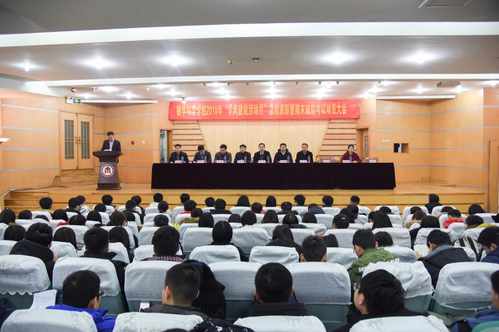 郑召文宣读了“学风建设活动”获奖名单。对在第十届全国大学生数学竞赛、全国大学生从师技能大赛、全国大学生数学建模大赛、美国大学生数学建模大赛、本学期学风建设先进班集体、纪念一二九歌咏比赛中获奖的班级和个人进行了表彰。学生代表王乐宣读了诚信考试倡议书。