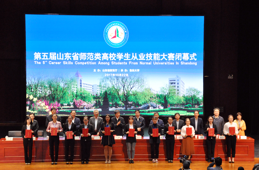 山东省师范类高校学生从业技能大赛从2013年开始举办,现已经举办五届。此次决赛由省教育厅主办,旨在进一步更新教师教育教学理念,强化师范生从教基本技能教学与训练,提升师范生的教学技能、实践能力和综合素质,增强其就业竞争力,推进教师教育持续健康发展。今年的赛事自5月份开始启动,赛事时间紧、任务重。分学前、小学、初中、高中四个学段,比赛项目包括说课、模拟上课、答辩三个部分。