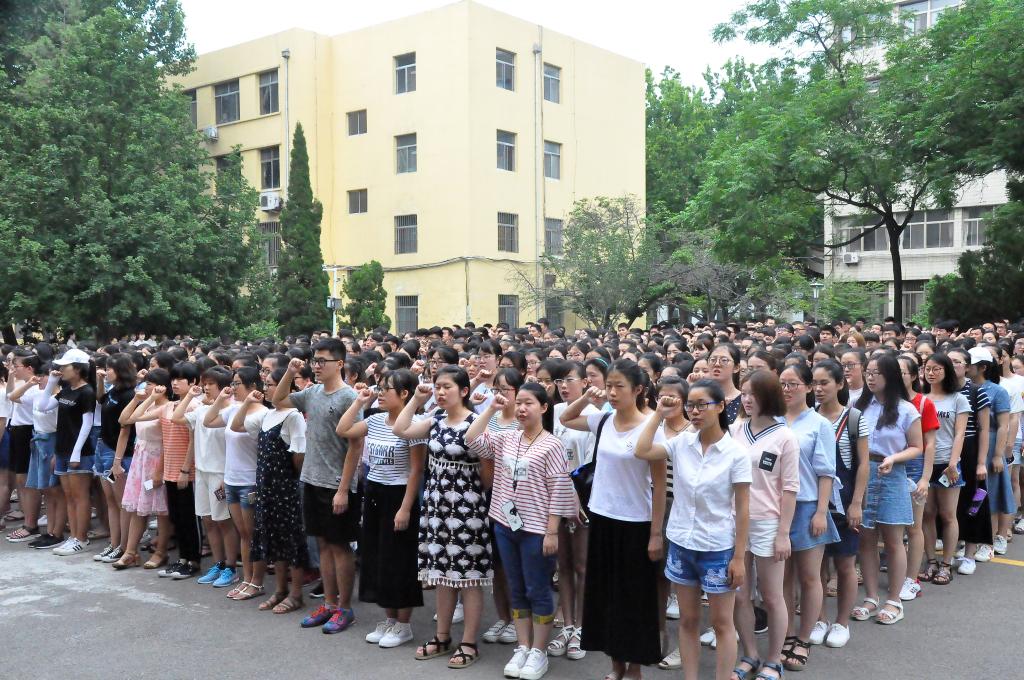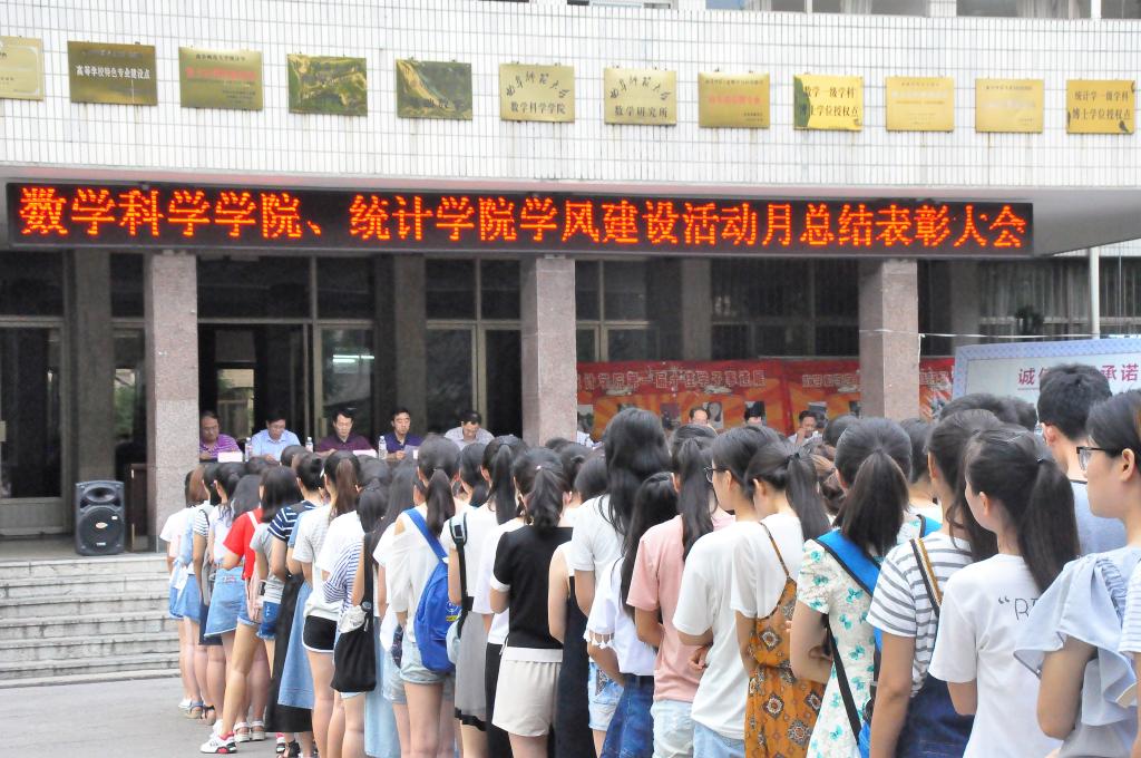 、统计学院在数学系楼前隆重举行2017年上半年学生建设活动月总结表彰大会,副校长辛杰、教务处、学生工作处、团委、炸金花