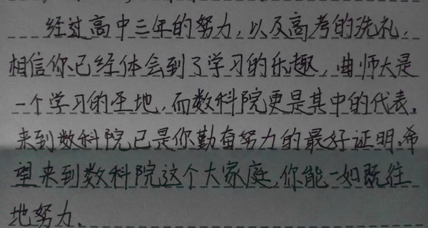 在后期采访中,新生们纷纷表示,这封简简单单却充满真情的书信不仅给他们提供了许多可行的经验和建议,更让离家的他们收获到了大学期间第一份温暖,这份温暖让他们对今后的大学生活充满了期待。