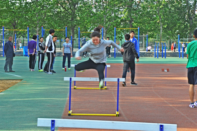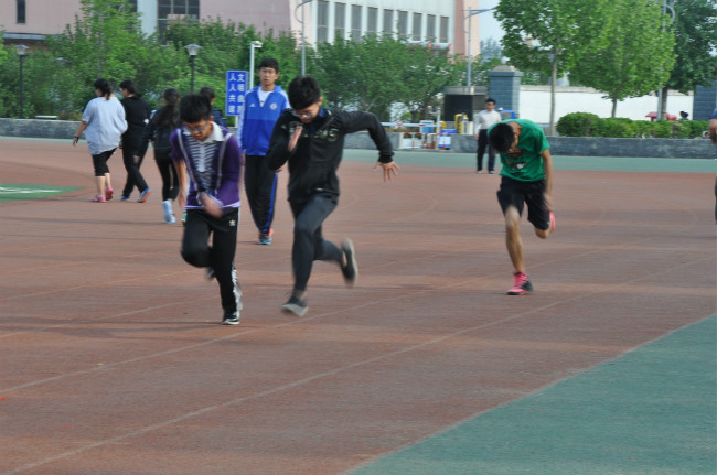 运动员们齐聚西操场参加春训,积极备战即将到来的2016年春季运动会。