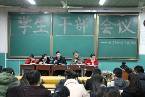 14级辅导员杜晨曦、15级辅导员郅艳梅与统计学院辅导员李玲出席了本次会议,参加本次会议的还有数学与统计学院各班班委及学生会部级以上干部。会议由刘永礼主持。