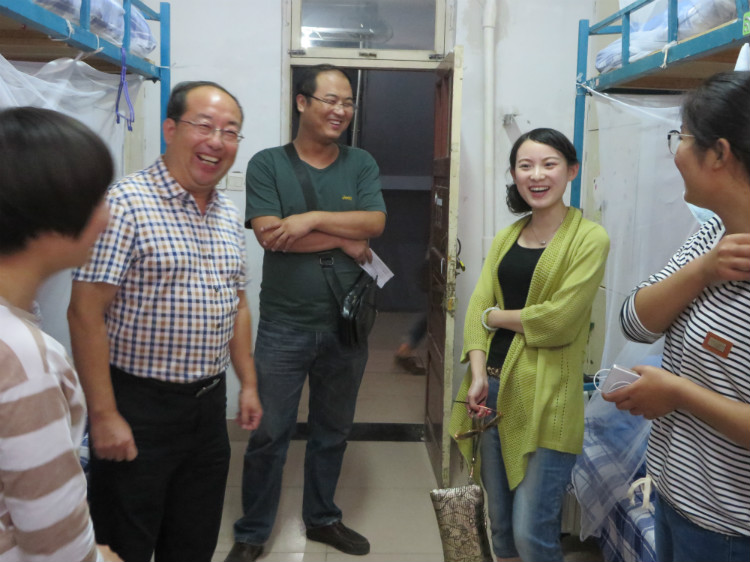 走进西公寓新生宿舍,孟院长和王书记等领导们首先给予大家亲切的问候,并代表学院向她们表示最热烈的欢迎,继而关切地询问她们的具体情况,来自哪里、什么班级、入学手续办好没等。同时,他对新生们提出的各种问题认真解答,并希望她们能够在校好好学习,做到让父母放心。此外,辅导员和学生会的师哥师姐们还特别地嘱咐新生要注意安全问题,保管好自身财物,早日适应大学生活。这种家常式的问候,让新生倍感温暖。