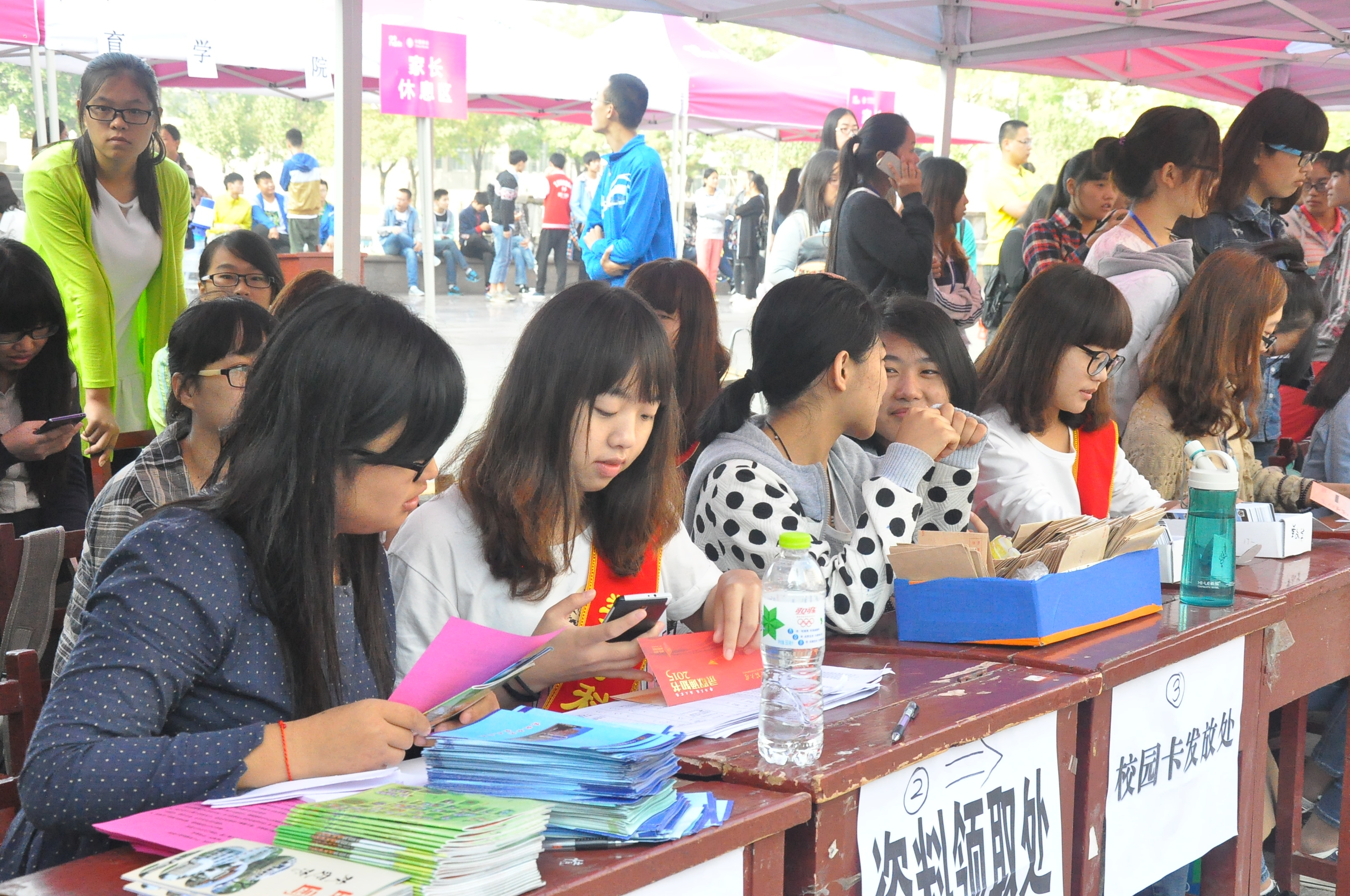 系楼旁设立了新生免费拍照处,为他们记录下了难忘的大学第一天。视察工作的老师们强调,招待新生时,一定要注意举止文明,细心周到,让新生能够感受到我们炸金花