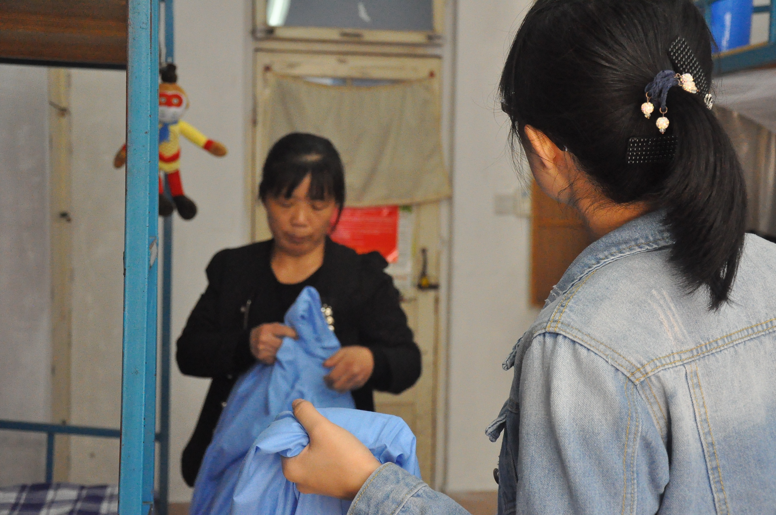 14级辅导员杜晨曦、15级辅导员郅艳梅莅临迎新现场视察工作。