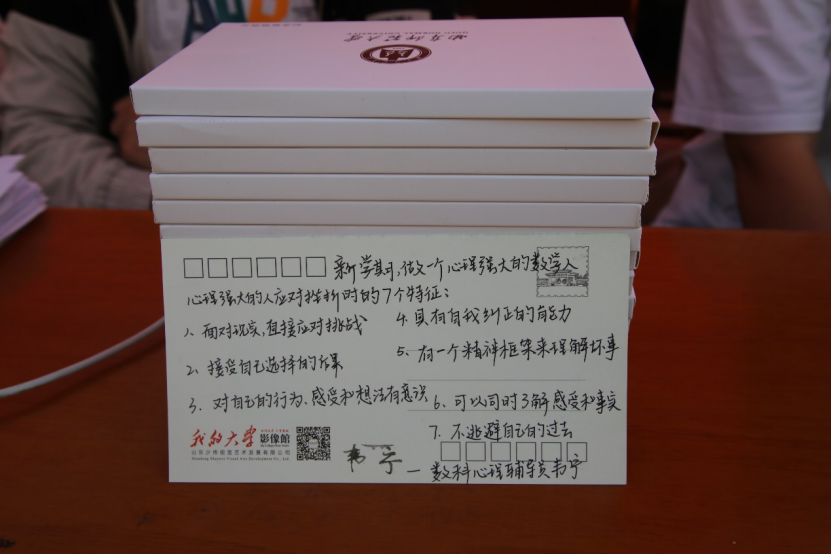 学院心理指导老师韦宁表示“讲座式、课题式的心理指导方式对同学们的触动感往往较弱、指导的实效性不高,如何真正让同学们正视心理问题,找到可倾诉对象是大学生心理指导的难点重点因此此次尝试用轻松、年轻的盲盒方式准备心理锦囊,以校园明信片为媒,与同学们对话。