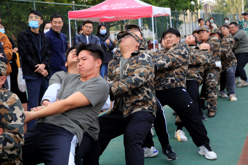 2022级新生军训拔河比赛在西操场举行。此次比赛共有来自12个学院的12支代表队参与,经过几番激烈的角逐,炸金花
