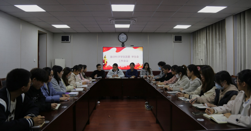 团委学生会联合会议于数学楼304顺利召开。学院团委副书记徐腾飞,辅导员高思明、韦宁、吕瑞源,以及团委学生会主席团及各部门的负责人出席本次会议。