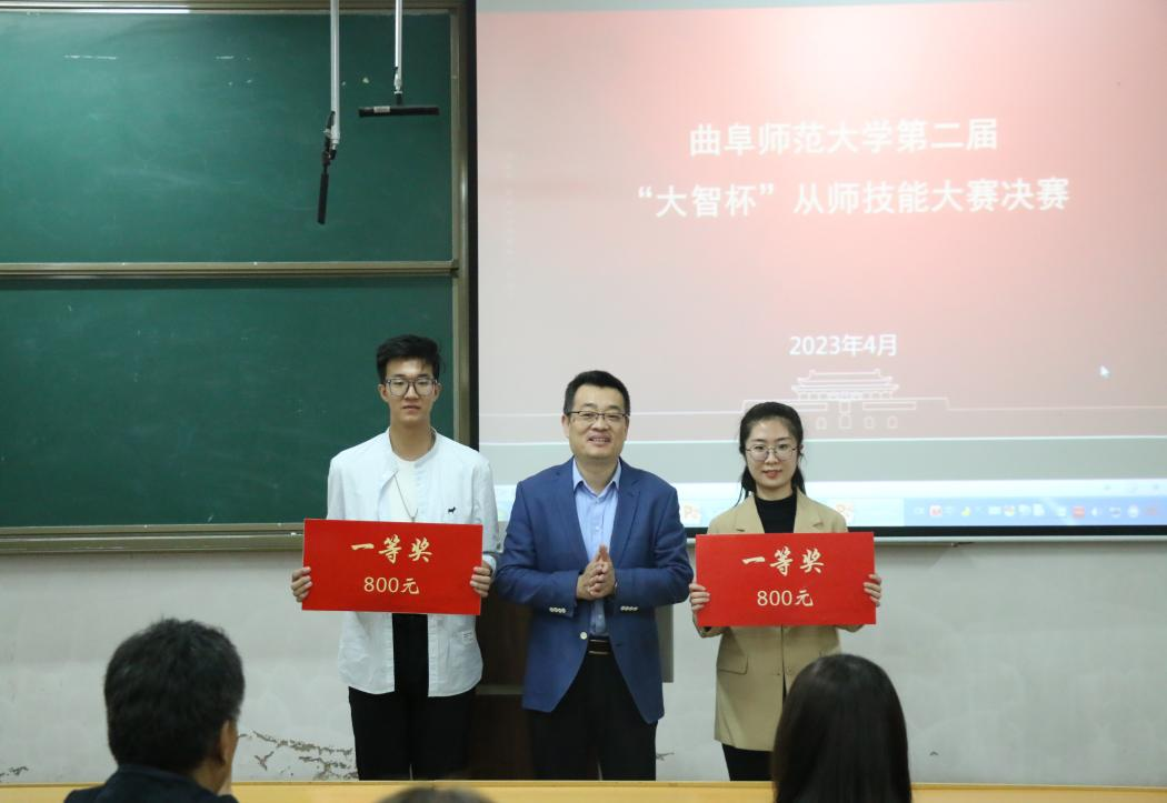 本次比赛分为院级初赛、校级复赛和校级决赛。校级决赛分为固定题目模拟上课、随机题目模拟上课、答辩等三个环节。比赛全面考察了学生对学情、教材、教法学法以及教学程序的分析和应用能力。孙欣怡同学生动的教学语言、得体的教学仪态、灵活的应对能力,获得了评委老师们的一致好评,最终荣获本届“大智杯”从师技能大赛理科组一等奖。
