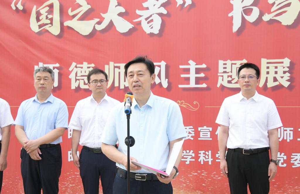 师德师风建设,强调学校始终将师德建设放在教师队伍建设的首要位置,通过强化政治引领、改革考核评价、深化教育培训,以新思想领航定向,以铸师魂固本培元,以严师风立言立行,以树师表引领风尚,持续强化全员全方位全过程师德师风养成。张洪海希望全体教师和即将从教的师范学子矢志不渝,做心怀家国的“大先生”;倾囊相授,做潜心治学的“好老师”;润物无声,做言传身教的“好榜样”。