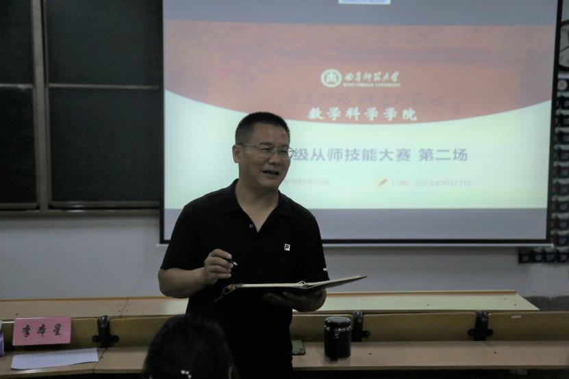 2023年从师技能大赛第二场于数学楼201教室举行。本次比赛邀请到了指导经验丰富的李本星老师以及参加山东省从师技能大赛并取得优秀成绩的李泽涵、王怡君、尹依同学出席担任评委。学院2021级、2022级学生代表积极参与观摩。