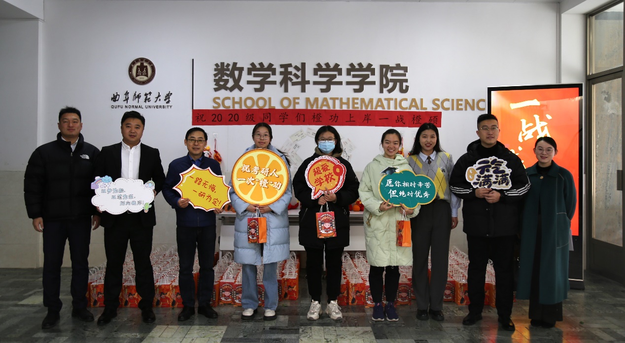 在本次活动中,学院精心为备考学子准备了香甜的橙子和软糯的“状元饼”,寓意着祝愿学子们都能“橙”功上岸,一战“橙”硕,希望同学们调整心态,轻装上阵,坚定自己的目标,奋力拼搏。师生们一起举着考研“打卡牌”合影留念,老师们为备考学子们送上了他们最真挚的祝福与期盼,希望学子们在考研路上能够披荆斩棘,金榜题名!