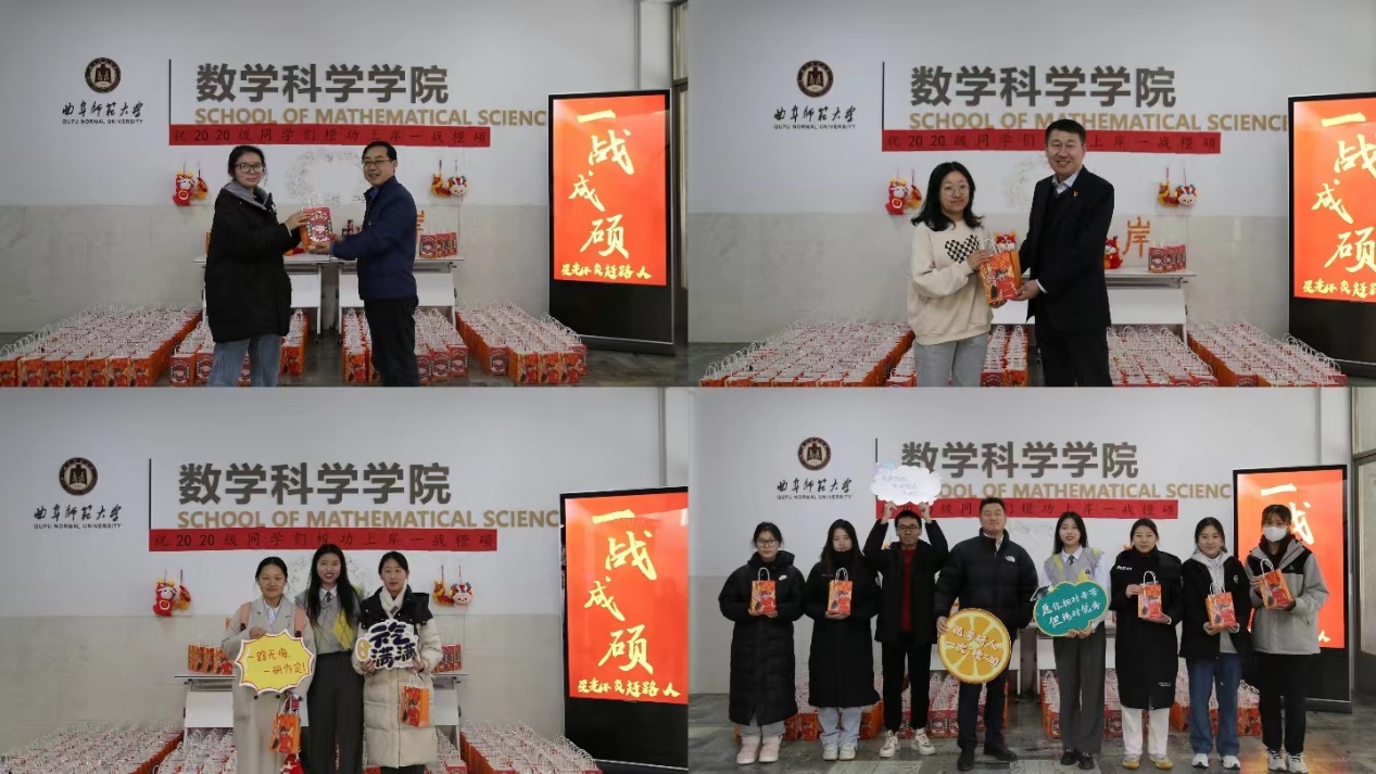 于12月8日上午,在学院一楼大厅开展了考研冲刺助力活动,学院党委书记宋国栋、党委副书记曲凤东及学院各年级辅导员出席活动,亲手为考研学子送上暖心“礼包”。