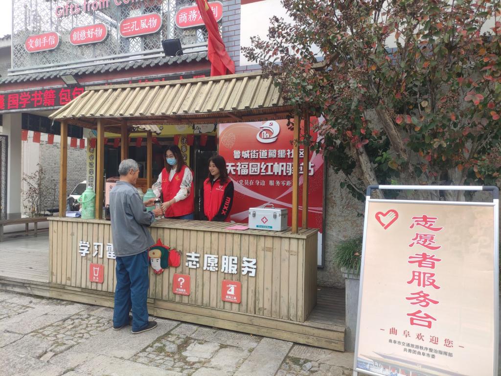 同学于10月15日前往阙里社区参加旅游服务志愿活动。