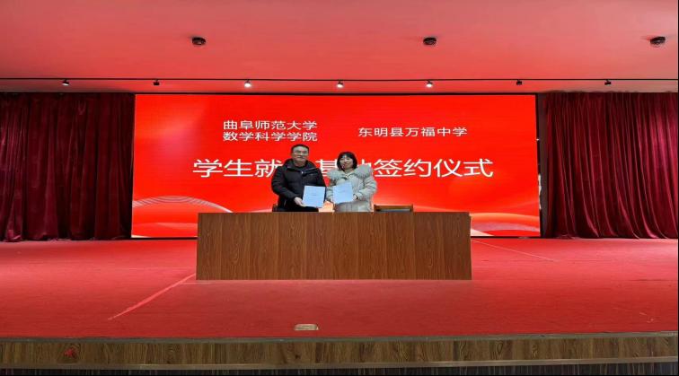 与菏泽市万福中学举行访企拓岗暨学生就业基地签约授牌仪式,学院党委副书记曲凤东、副院长王培合、团委书记徐腾飞一行赴菏泽市东明县万福中学参加了此次活动。