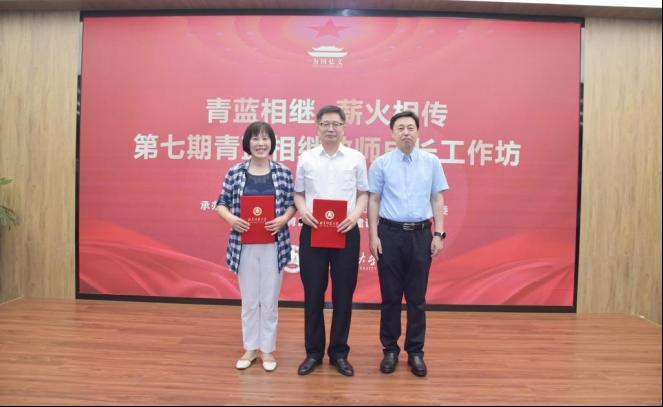 张克梅教授、统计与数据科学学院尹传存教授受聘第七批“青年教师成长导师”,张洪海为两位成长导师颁发证书。