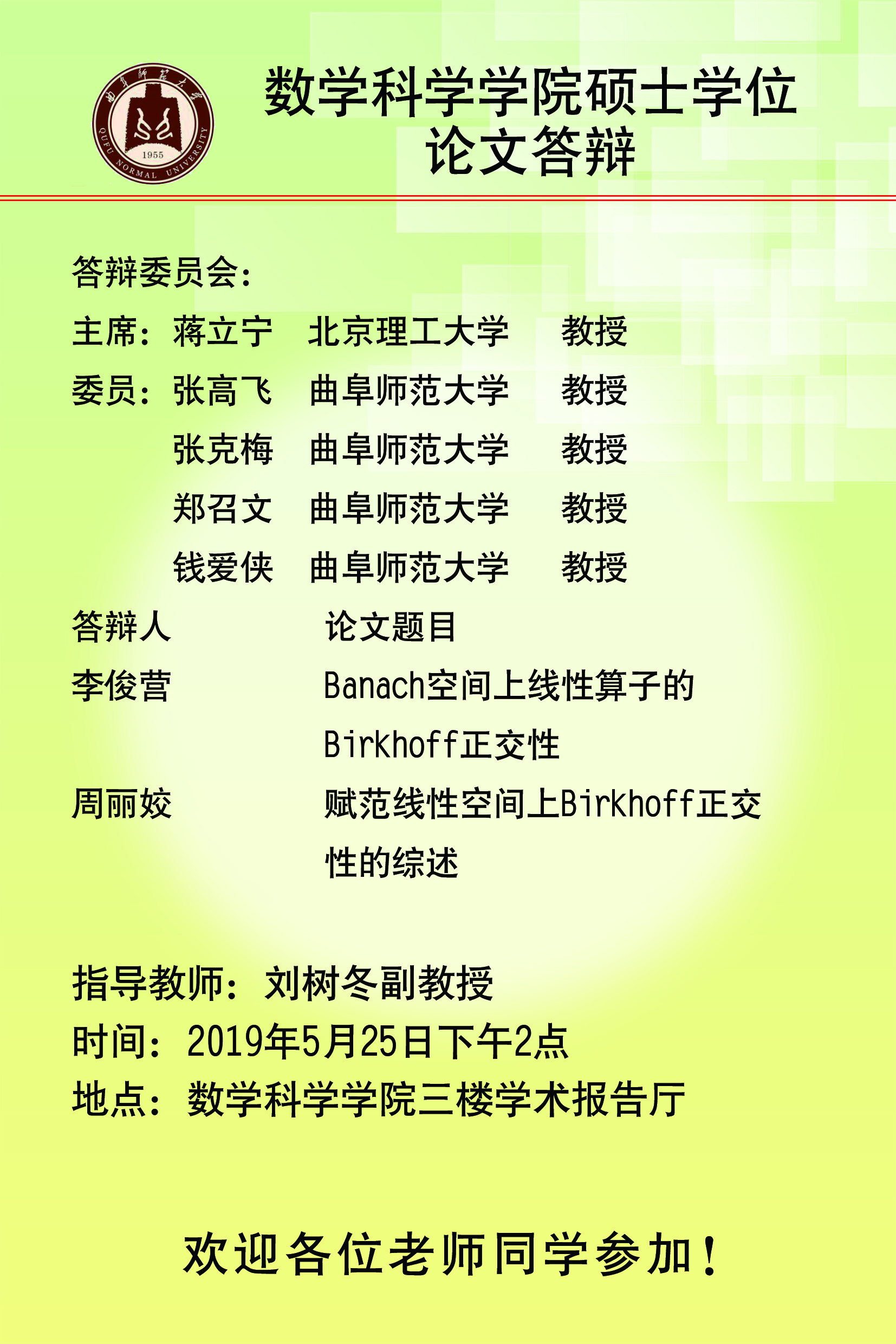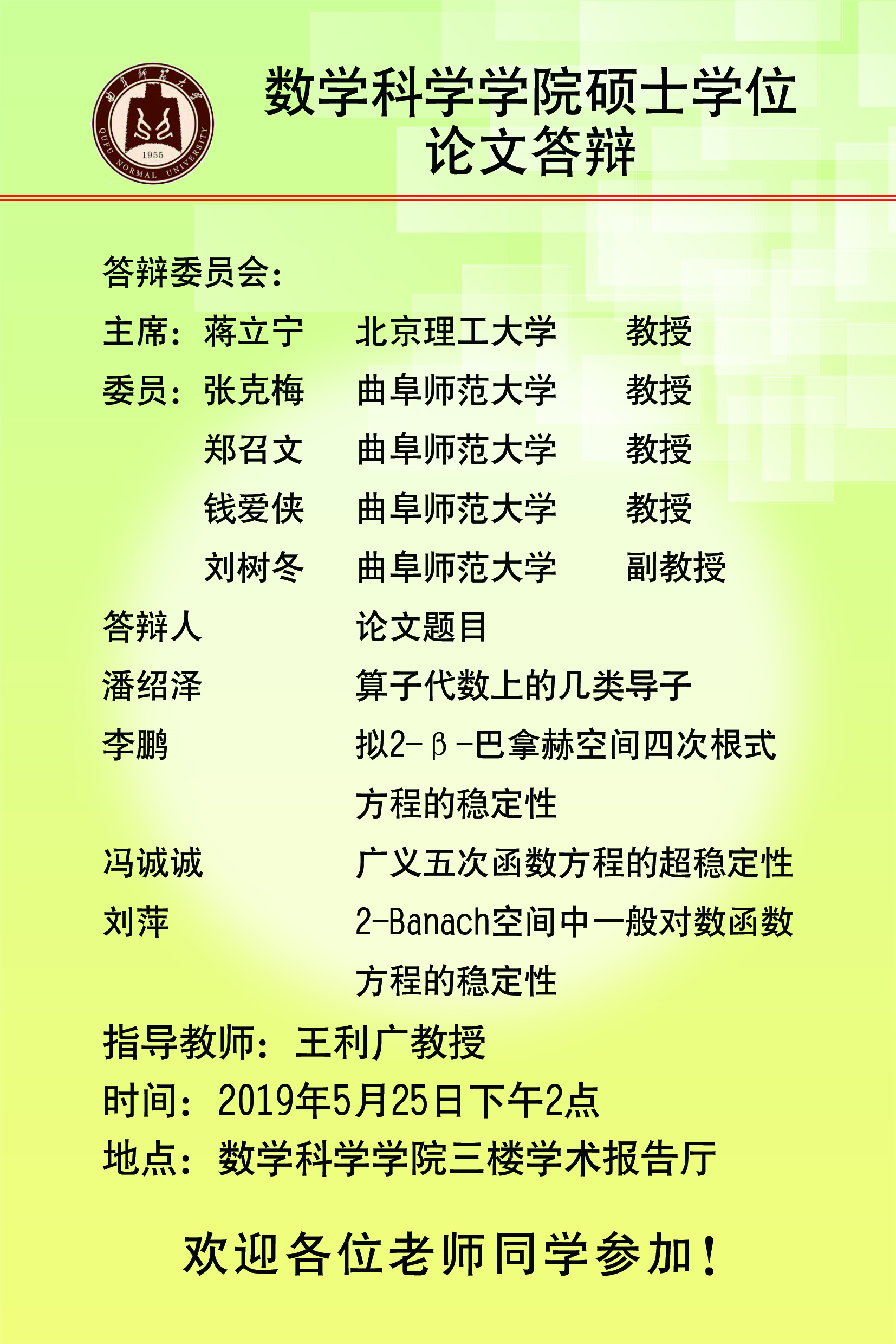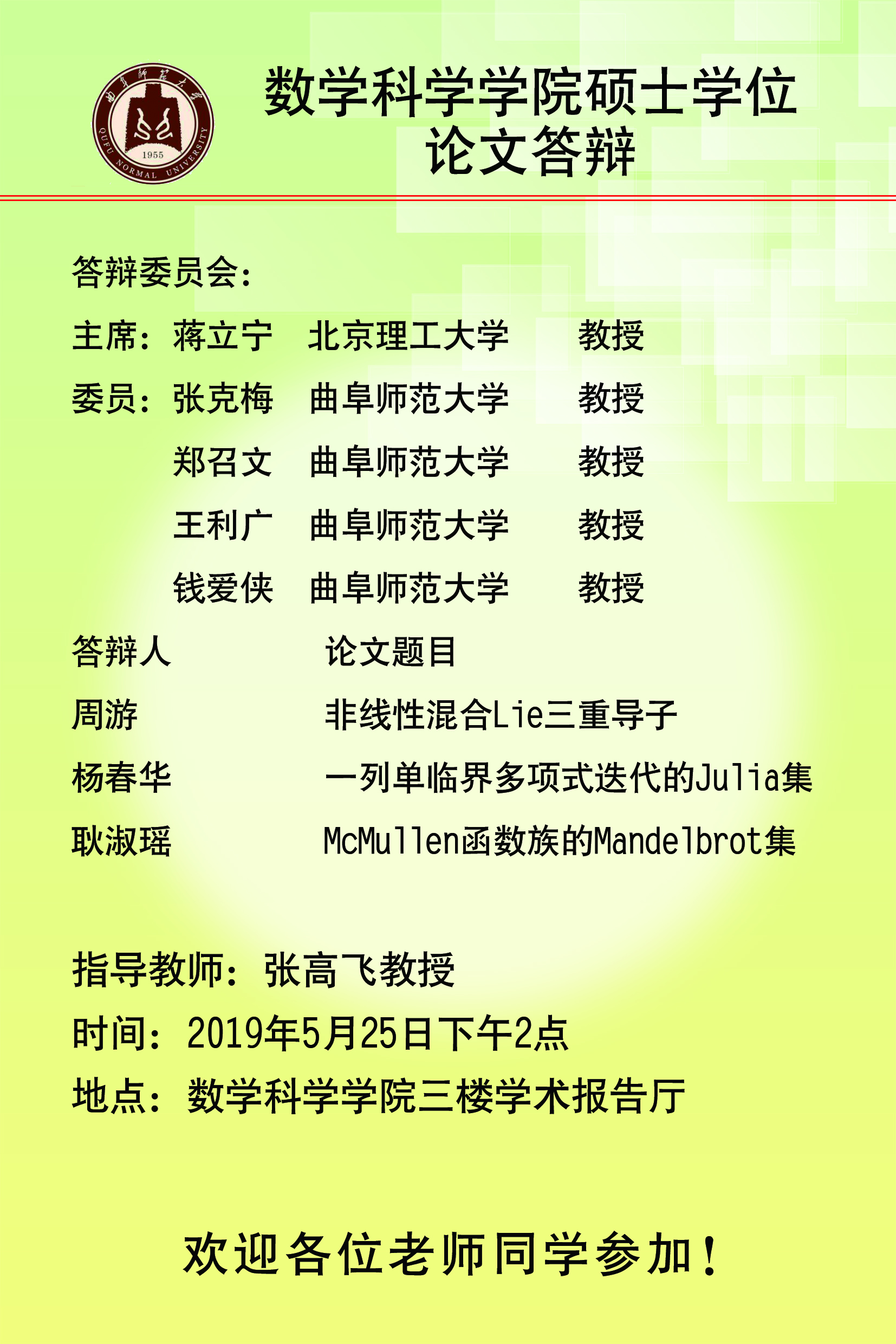 硕士学位论文答辩预告(二)