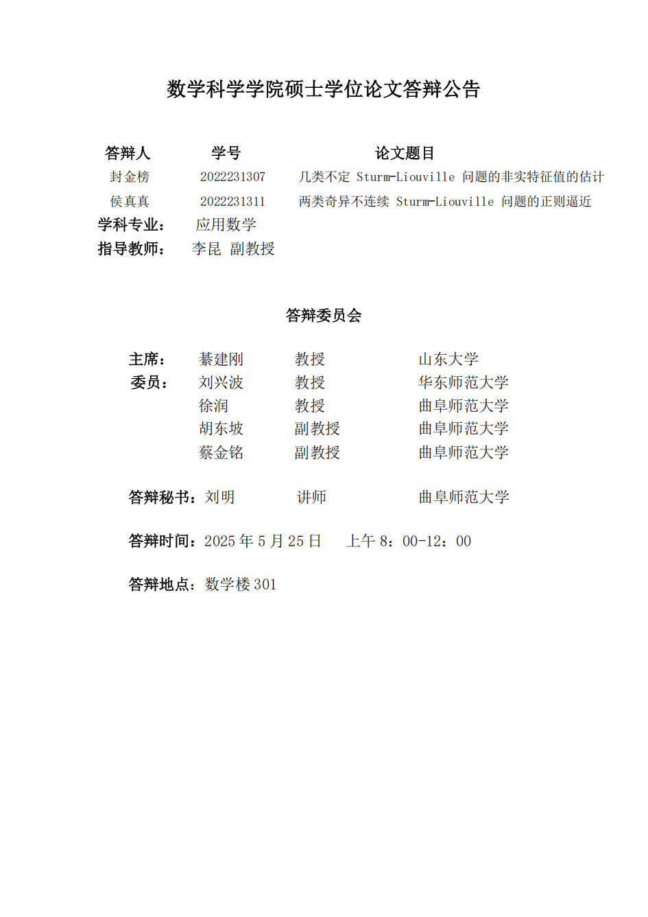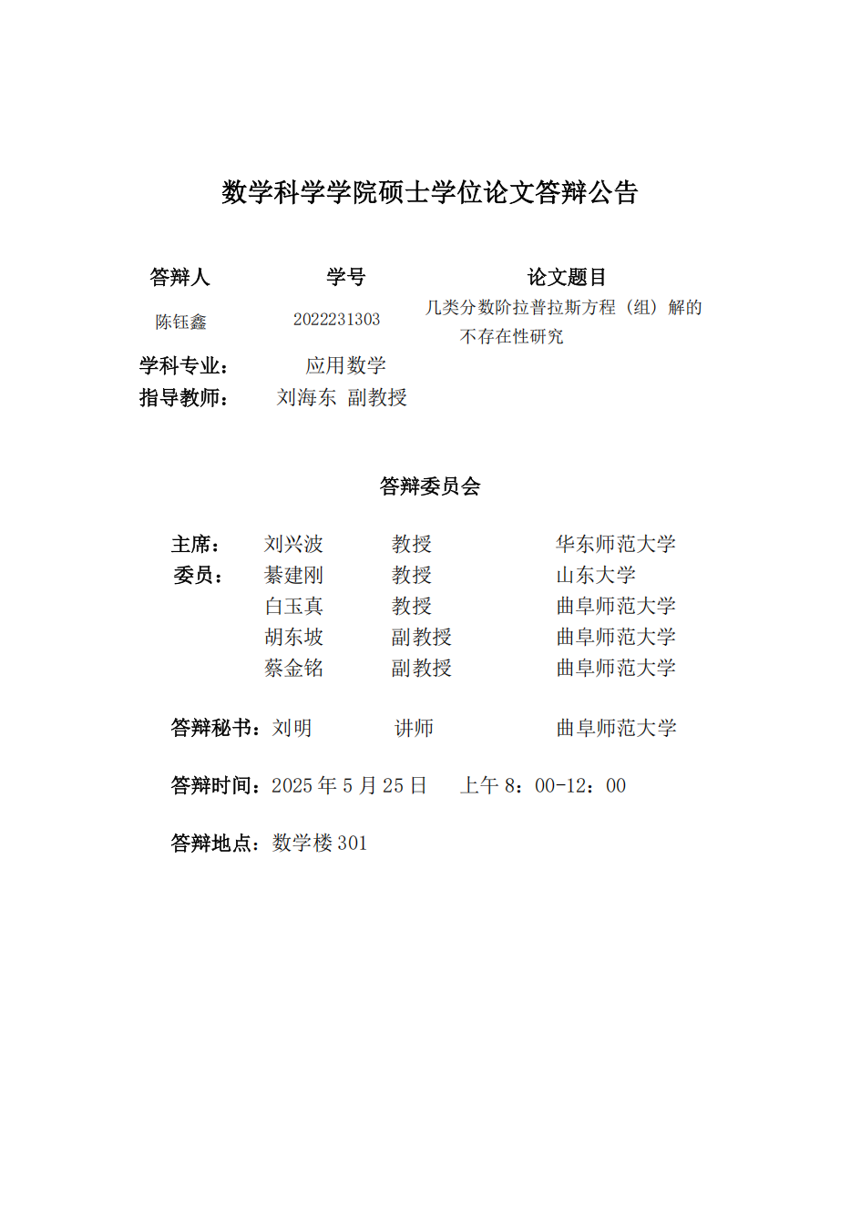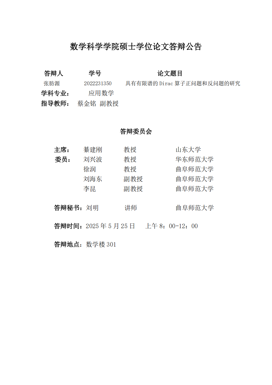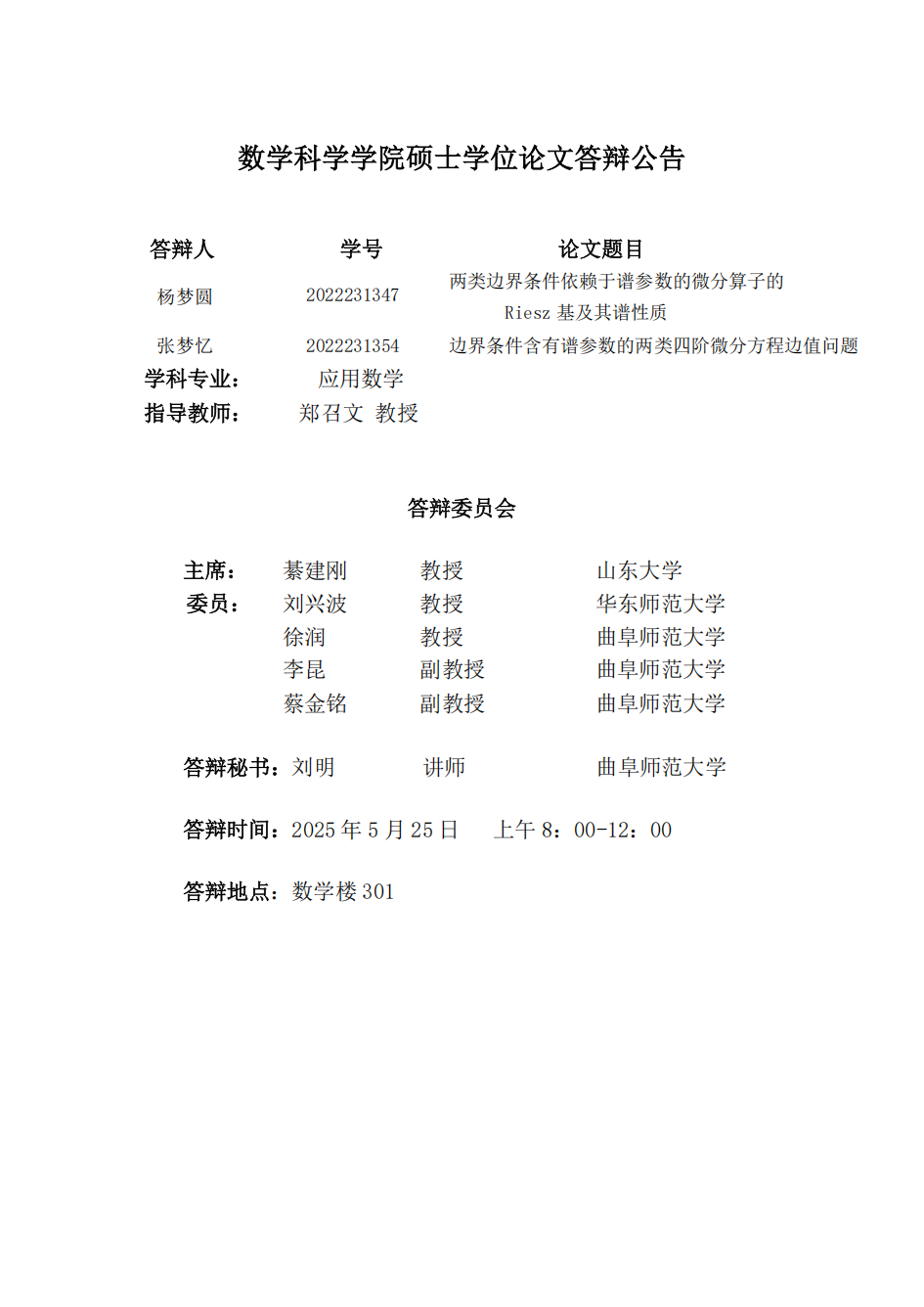 炸金花 2025届硕士学位论文答辩公告(七)