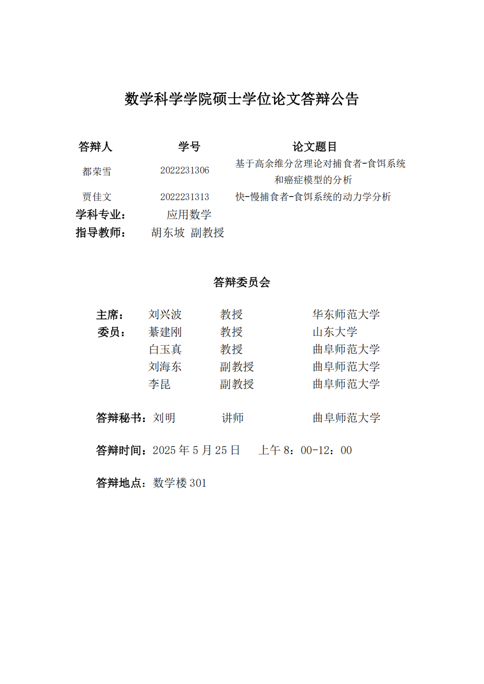 炸金花 2025届硕士学位论文答辩公告(十)