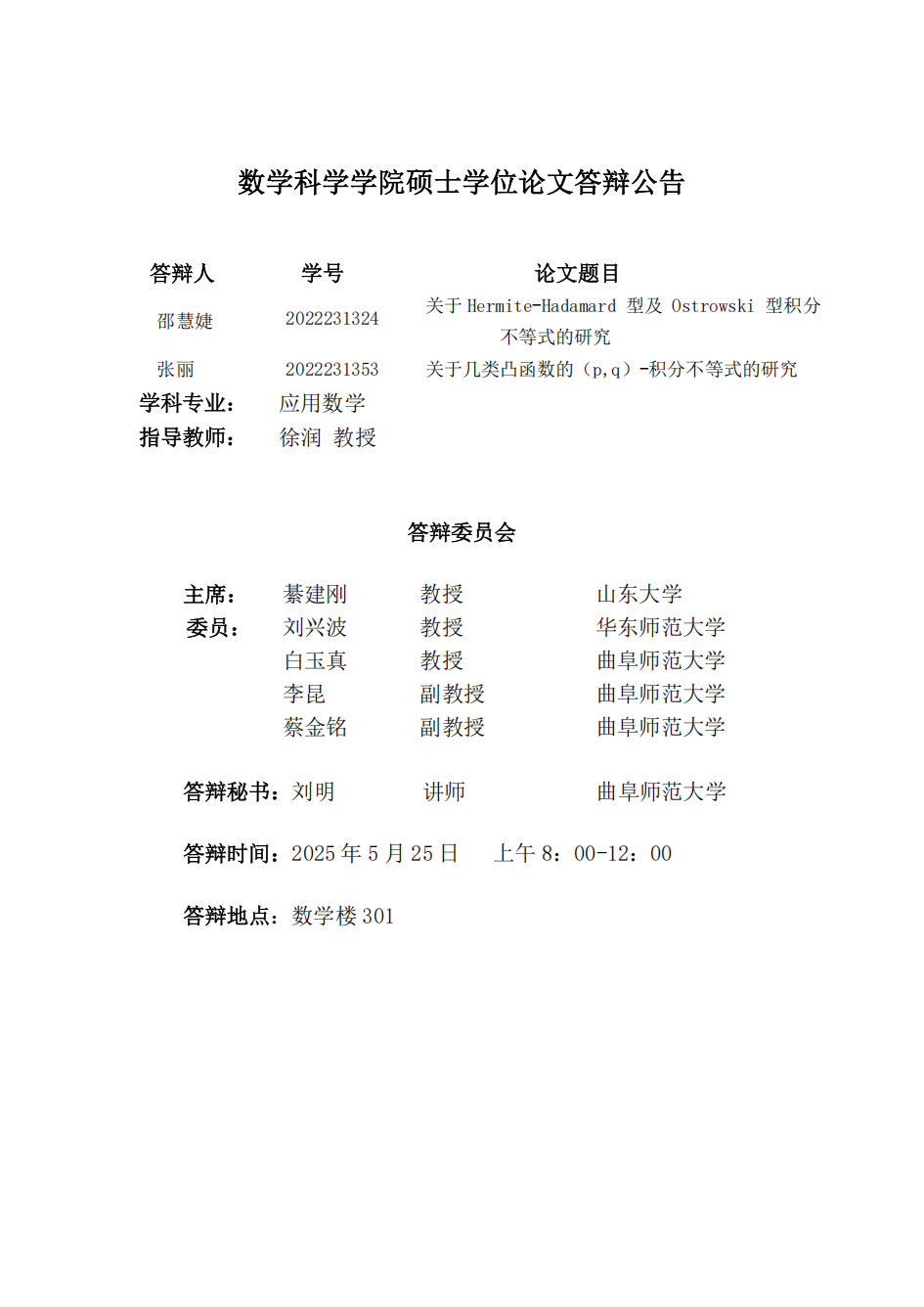 炸金花 2025届硕士学位论文答辩公告(十一)