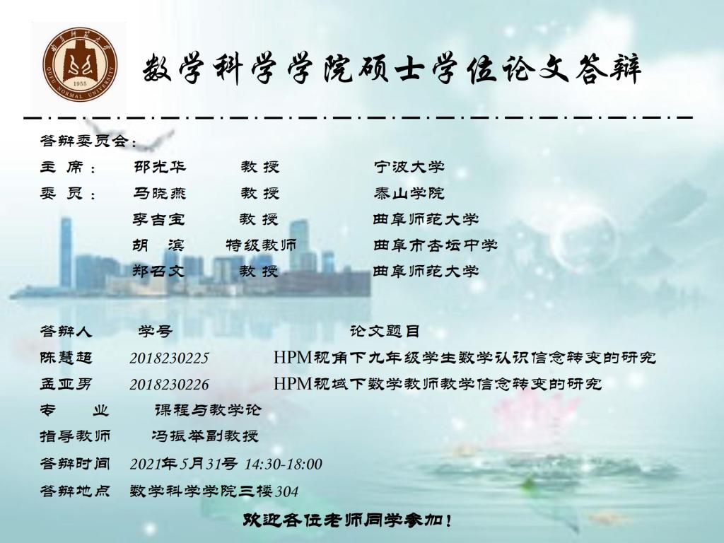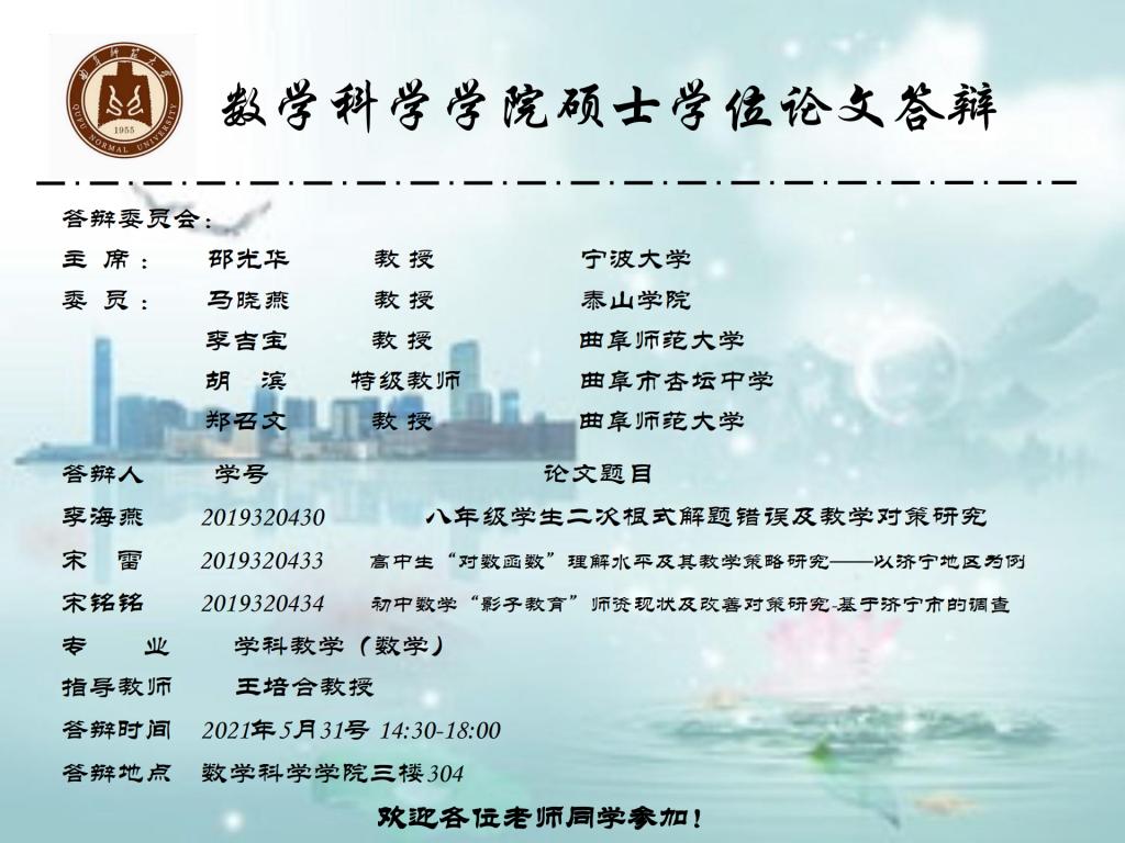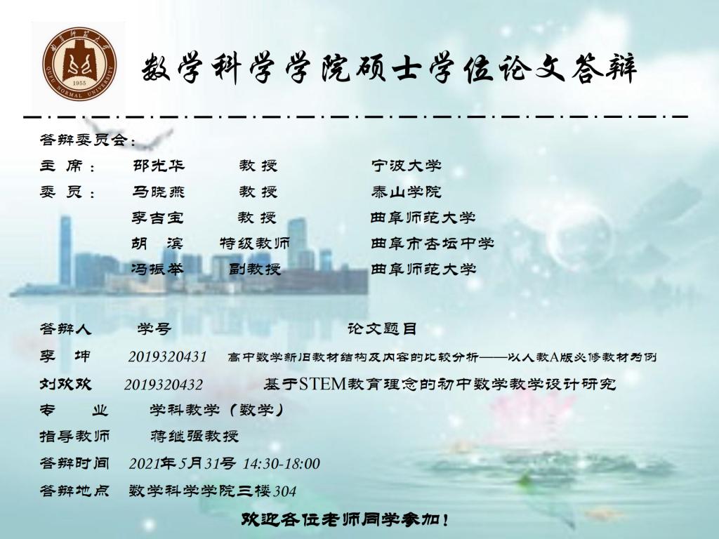 2021年硕士学位论文答辩公告(八)