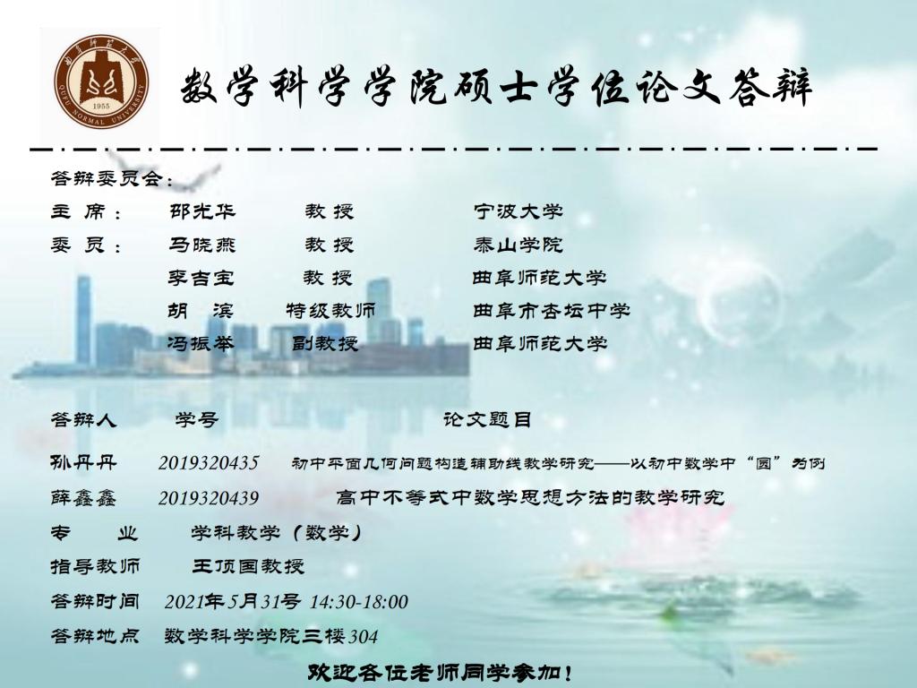 2021年硕士学位论文答辩公告(七)