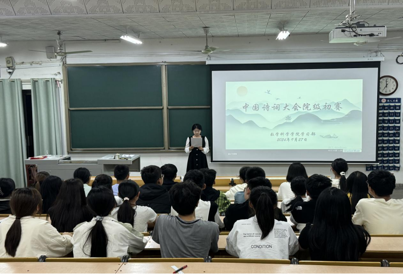 讯(通讯员:董馨摄影:延云聪 常益宁)为深入贯彻党的教育方针,积极响应教育部、国家语委及中央广播电视总台关于开展《2025中国诗词大会》的号召,进一步弘扬中华优秀传统文化,激发学生对诗词的热爱,9月27日,《2025中国诗词大会》院级初赛在数学楼201教室举办,共有18位同学参加本次比赛。