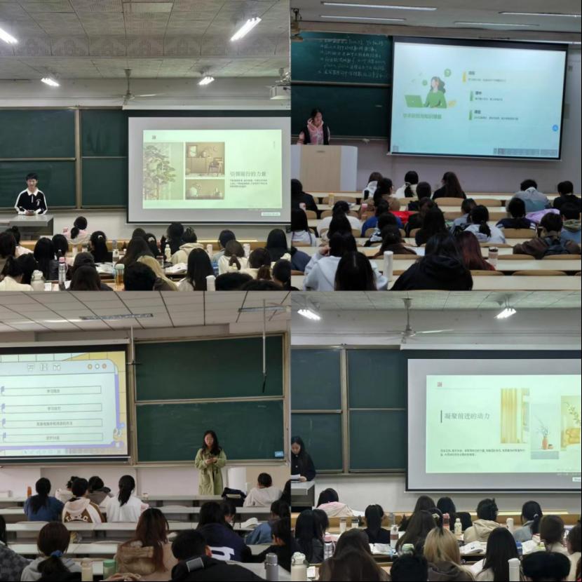 各个班级主讲人们分别从专业课学习、学业规划、综合素质提升等方面分享了自己的经验。他们结合自身的学习经历,告诉同学们如何端正学习态度、如何认真上课每堂课、如何利用好课余时间复习巩固以及如何把握四六级考试节奏等。他们还分享了自己参加课余活动和各类学科竞赛的经验,课余活动和各类学科竞赛既能锻炼个人和团队协作能力,还能增加社会实践经验,在自己成长进步的同时学习身边同学长处和闪光点,为自己的综合素质能力提升打下基础。分享会上,各班代表强调了明确目标的重要性,希望同学们提前规划好发展方向,以梦为马,不负韶华。