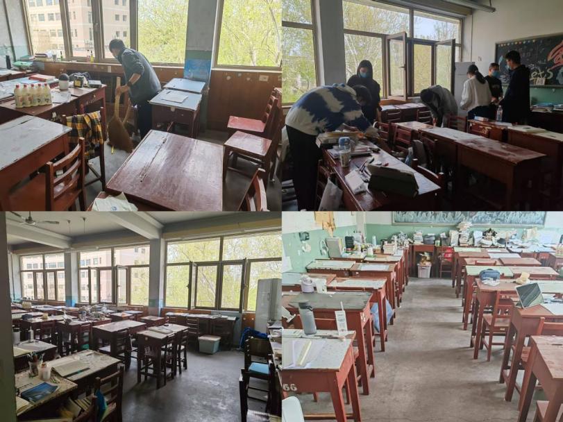 活动当天,志愿者们携带扫帚、拖把、抹布等清洁工具前往考研自习室。大家明确分工:清扫地面、擦拭桌椅、清理窗台、黑板和垃圾桶,不放过任何一个卫生死角。经过数小时的辛勤努力,原本略显杂乱的考研自习室焕然一新。地面干净整洁,桌椅摆放整齐,窗台明亮通透,整个自习室散发着清新、舒适的气息。