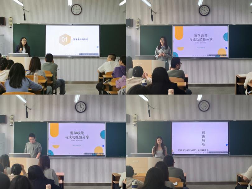于4月17日在201教室举办“留学政策与成功经验分享会”,本次会议特邀请启迪留学的田欣老师和2025届出国考研成功的学生,向学院师生介绍出国留学的相关政策和经验。分享会由学院2022级辅导员吕瑞源主持。