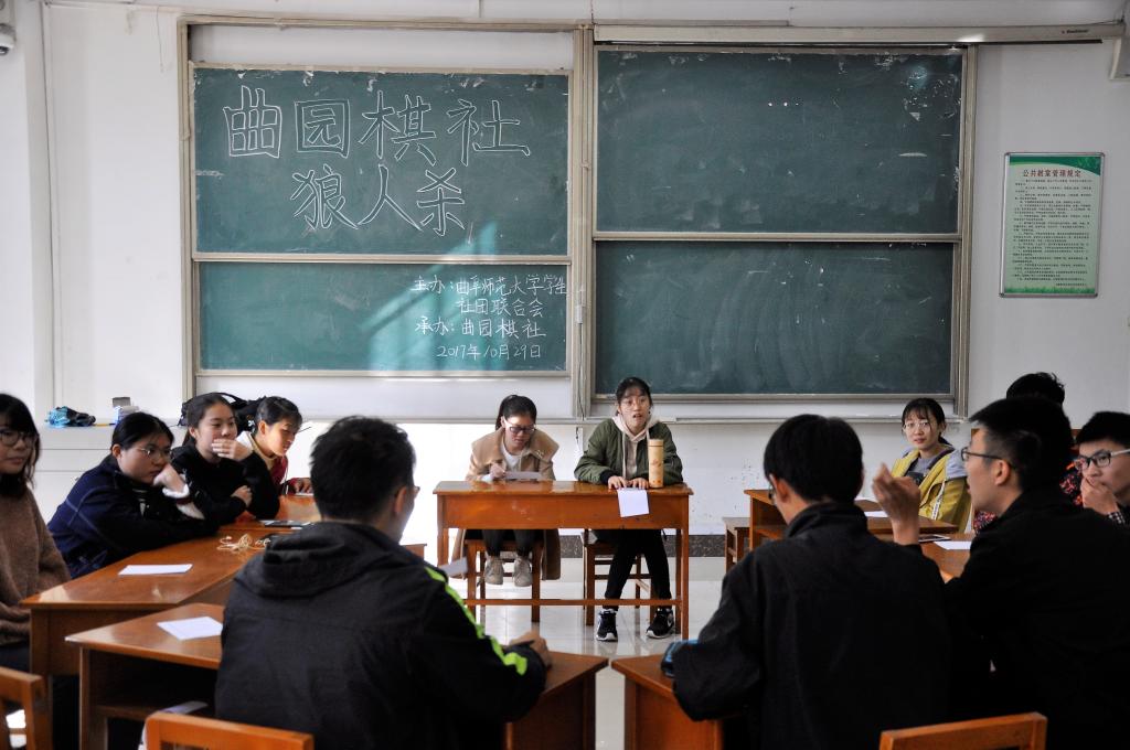学生社团联合会、曲园棋舍主办的狼人杀比赛在综合教学楼105室顺利举办。