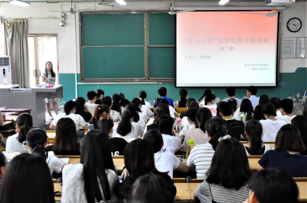 辅导员郅艳梅与校学生会主席刘誉迪主讲的第二、三期“青马工程”大学生骨干培训在数学楼101教室圆满举行,炸金花