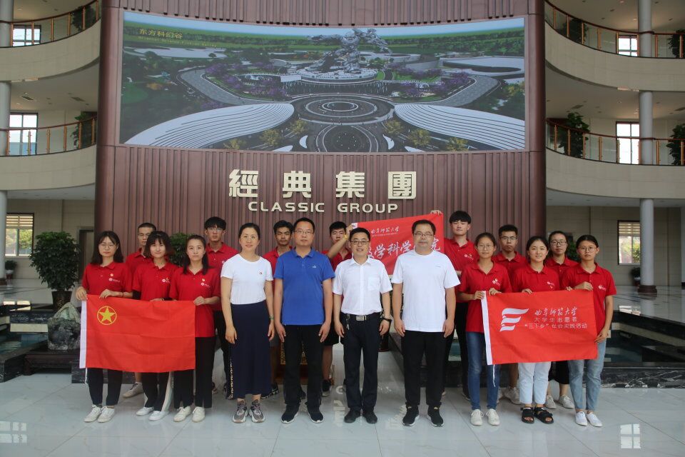 经典重工事业集团负责人对大学生社会实践表示由衷的支持与欢迎,向实践队的全体队员介绍了企业的发展历史、发展规模及近年来取得的良好的社会效益。山东经典集团创建于2011年, 公司占地1000余亩,目前有员工3000余名,其中管理人员100余名,技术人才500余名,旗下有10余家子公司,涵盖钢结构、建筑设计、物资贸易、仓储物流、电子商务、文化传媒等;同时长期与上海理工大学、上海同济大学、山东建筑大学、沈阳建筑大学、清华大学、中国建筑科学研究院等院校和单位进行研发合作。公司获得“国家知识产权优势企业”、“国家高新技术企业”、“山东省装配式建筑产业示范基地”、“山东省现代化装配式建筑产业试点基地”、“山东省技术中心”、“国家守合同重信用企业”、“山东省十佳敬老企业”、“山东省文明单位”、“园林式花园企业”、“中华钢构网雇主”等荣誉称号。同时公司负责人表示该企业可以为炸金花