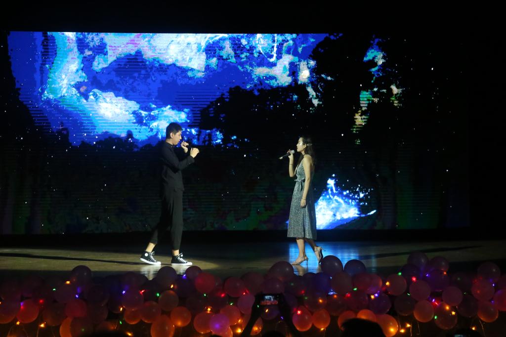 七点整,晚会正式开始,在热烈的掌声中刘建新致开场词,代表学院全体教师对2015级毕业生顺利完成学业致以了热烈的祝贺和衷心的祝福。在座2015级毕业生的四年回忆随着开场视频的播放慢慢涌现,在主持人诙谐风趣的台词串联下,歌曲、舞蹈、小品、相声接连登上舞台,一次又一次点燃在场观众的热情。本场晚会内容丰富,形式新颖,原创歌曲《你的童年》谱写着同学们对美好青春的回忆,精彩小品《兄弟,别闹》演绎着同学之间的深厚的友情。2015级班长团支书共同表演《你曾是Super star》,辅导员郅艳梅登台寄语,表达了对毕业生们的不舍,展现了师生间深深的情谊,将整场晚会推向了高潮。在歌曲《仰望星空》的旋律中,所有表演者走上舞台,向大家挥手告别,晚会接近尾声。