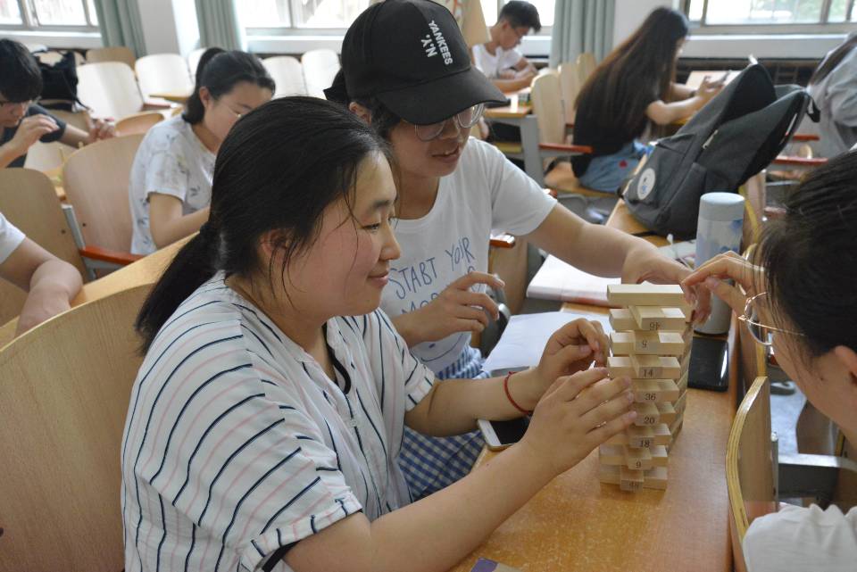 本次活动共有数独、魔方、叠叠高、汉诺塔四项内容。同学们快速心算,在数独方格纸上填上一个又一个数字;手拿魔方的同学旋转着魔方,原本颜色杂乱的魔方变得整齐,有序;叠叠高的积木被抽出一块又一块,重新放到顶端,同学们观察细致,寻找平衡点;汉诺塔上盘子的自动方法也在不断被更新。在完成游戏的同时,同学们的脑力与手速均得到了锻炼。