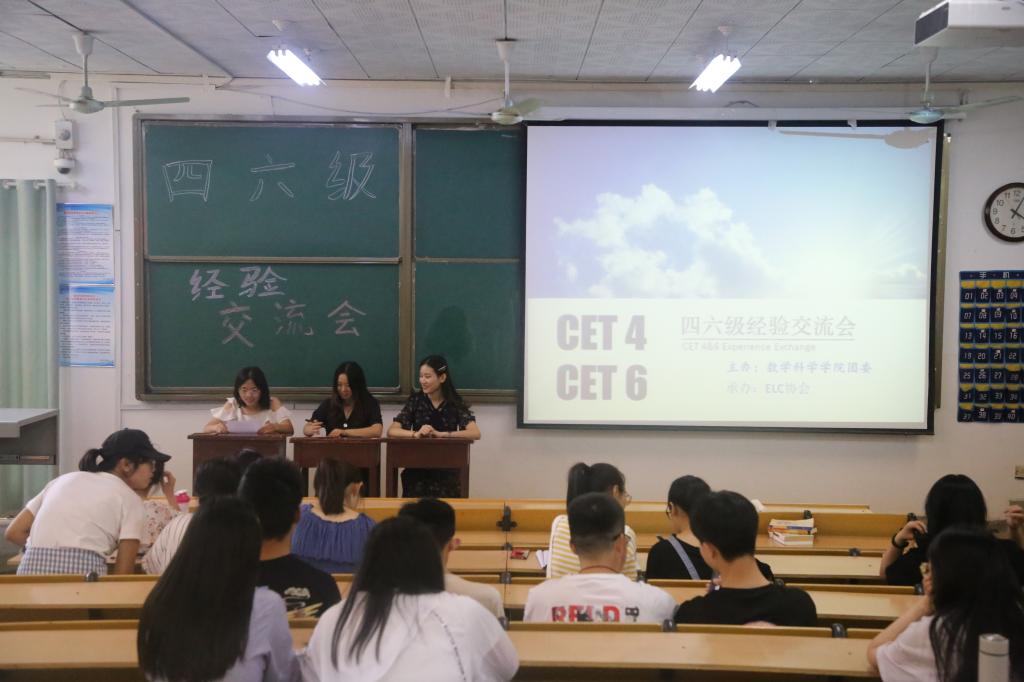 团委举办的“备战四六级,扬帆迎成功”四六级经验交流会在数学楼101教室成功举办。来自17级的四六级成绩优秀学生毕钰、李江敏、李汇为在座同学做交流分享。
