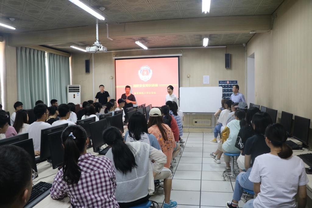 邀请校公安处刘淑朋老师为师生代表进行了消防安全知识讲座。