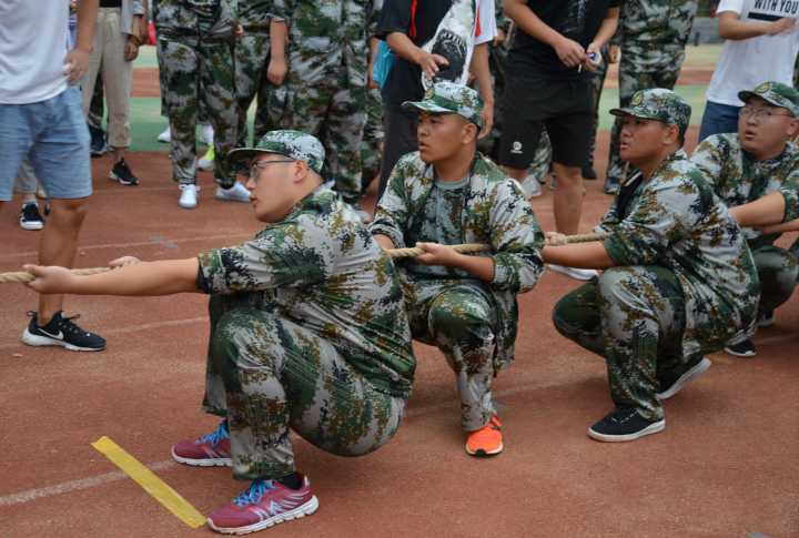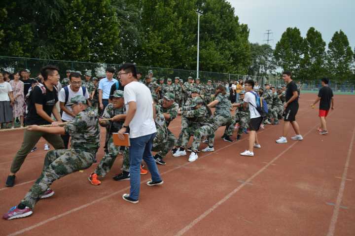 9月14日下午,2018级新生军训拔河比赛在西操场成功举行。本次大赛旨在促进新生之间的交流,丰富同学们的大学生活,同时,拔河比赛也是大家军训生活中的一味调味剂,增加了同学们军训生活的乐趣。此次比赛共有来自12个学院的12支代表队参与,炸金花