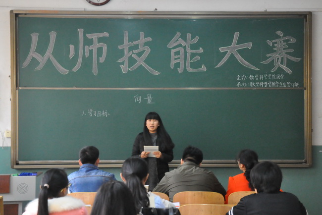 11月13日下午两点,由数学与统计学院团委主办,学生会学习部承办的从师技能大赛(初赛)在数学教学楼104、107、108教室成功举行,学院14级、15级、16级师范类专业的部分学生参加了本次比赛。