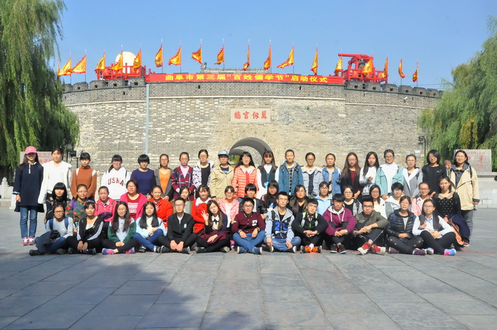 教学楼前集合,学生会人员清点人数后带队步行前往三孔景区。到达目的地后,学生会负责人简单强调了安全问题和注意事项后,队伍解散,同学们自由游览了孔府、孔庙和孔林。怀着崇敬的心情学习了先师孔子伟大的事迹和思想,同学们的喜悦之情溢于言表,纷纷拍照留念。