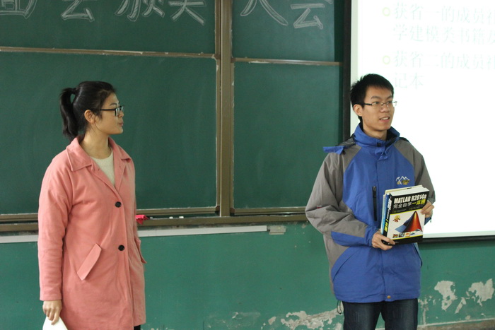 活动伊始,曲园数模学社负责人向大家详细介绍了社团的成立背景及社团章程,并就社团效用与大家展开了深刻讨论。随着热烈的掌声响起,在本届全国大学生数学建模竞赛中荣获省一省二及以上奖项的社员依次上台领奖。交流会最后,负责人以ppt的形式向新社员们展示了几道数学建模大赛的题目,并与他们进行交流与互动,简单地阐述了解题思路与解题方法,使新社员们对数学建模有了更进一步的了解。