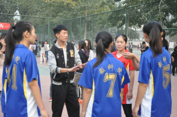 排球场继续进行。由13级辅导员朱伟卫带领的炸金花