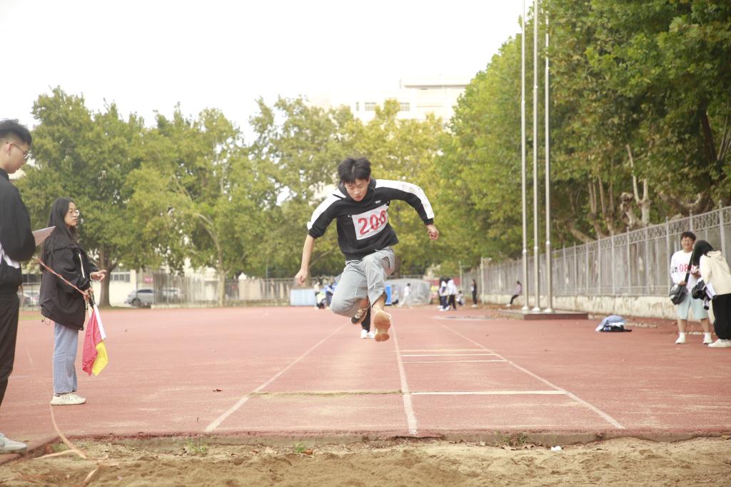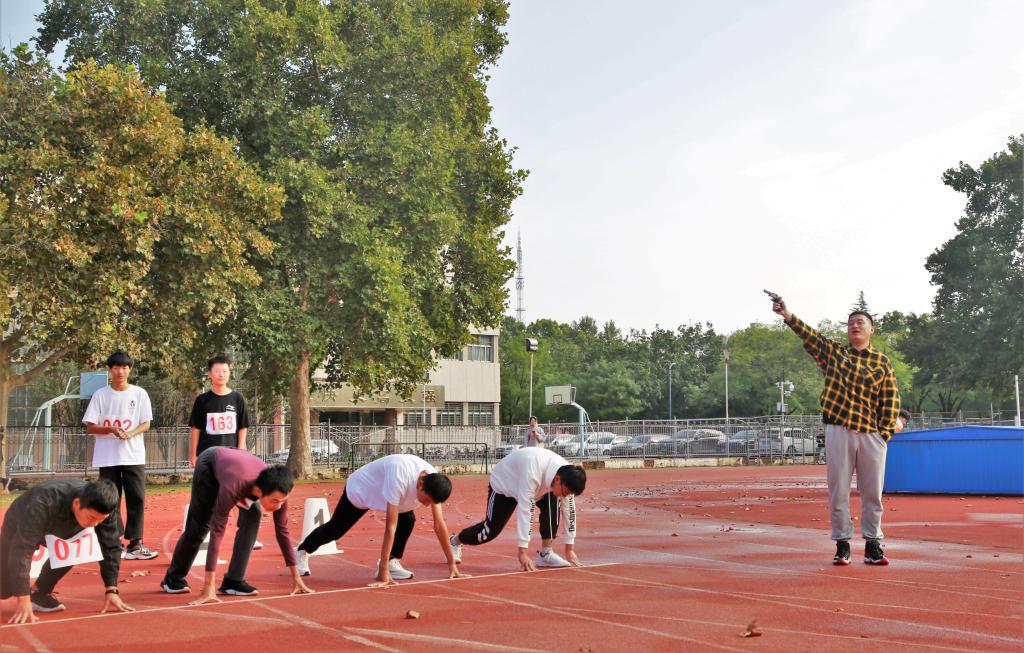 曲凤东在开幕式致辞中希望同学们树立健康第一的理念,在体育锻炼中享受乐趣、增强体质、健全人格,同时要树立高远志向,历练敢于担当、不懈奋斗的精神品质。开幕式结束后,各组选手整装待发,伴随着一声清脆的枪响,男子100米运动员冲出起跑线,一天的赛程正式开启。运动场上,虽秋风瑟瑟但却挡不住运动健儿们的激情,赛场上,运动员们精神饱满,斗志昂扬;观众席间,同学们养精蓄锐、欢呼呐喊。主持人实时播报着比赛的最新情况,热情地宣读着同学们的加油稿,现场气氛十分活跃。在运动员们紧张的比赛和大家的共同努力下,一天的赛程逐渐接近尾声,努力拼搏的运动员们也凭借着超强的实力,取得了优异的成绩。