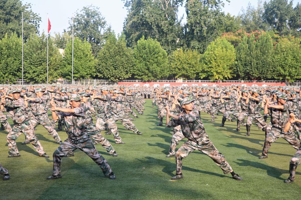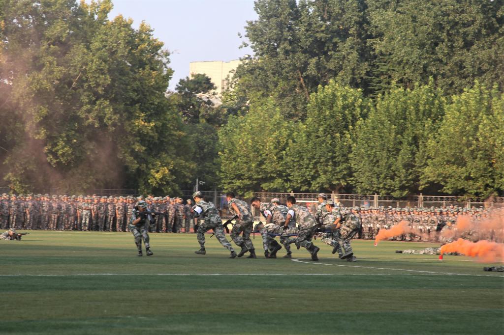 伴着雄壮的义勇军进行曲,五星红旗冉冉升起。一支支方队以崭新的面貌接受检阅,整齐的步伐是他们的成绩,响亮的口号是他们的誓言;黝黑的皮肤,坚定的眼神,无畏的气势代表着他们的成长。军体拳方队势如奔雷,擒敌拳方队锐不可当,心理健康操方队刚柔并济,内务方队干净利落,定向越野方队健步如飞,剑术方队表演震撼让人热血沸腾。标兵连配合方队的变换,摆出“70”、“听党指挥、忠于党”、“学而不厌、诲人不倦”等字样,军训教官带来的倒功格斗和战地救护表演更是赢得现场阵阵欢呼,他们摔打摸爬,铁骨铮铮,尽显真功夫。大会宣布表彰2019级新生军训先进集体、先进个人等决定,炸金花