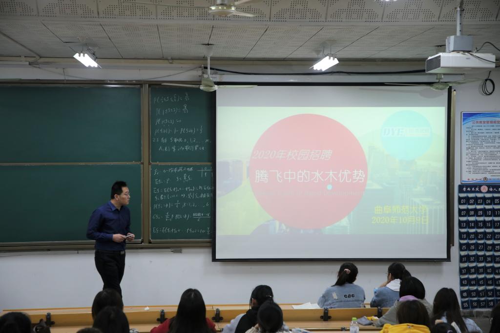 在此次招聘会上,水木优势教育负责人通过一段视频展开了水木优势教育的发展历程,从一开始名不经传的小公司到如今欣欣向荣的企业,水木优势教育一路向前、势如破竹。在讲解中负责人对公司做了简要的介绍、阐明公司文化及目前的行业发展现状和未来趋势,以图片的方式向观众展示了目前山东校区的教育基地,表明了公司未来的发展规划,展示了招聘岗位和员工待遇,提出了针对应聘人员的具体要求,并对应聘人员提出的问题做出详细的回答。最后由副书记曲凤东做会后总结,鼓励大家转变就业观念,积极投入到下一步的就业创业中。